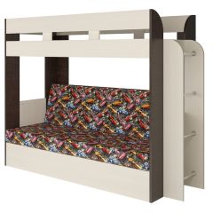 Кровать 2-х ярусная с диваном Карамель 75 (Газета) Анкор светлый/Бодега | фото