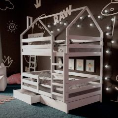 *Стоимость указана за модули: Кровать-домик двухъярусная 80*160 Белый (Ящики в стоимость не входят)