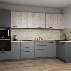 Фасады верхних модулей со свесом 12 мм дают возможность использовать без установки ручек.