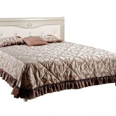 В изделии нет лишних декоративных элементов – только мягкая кожаная обивка на спинке изголовья и фигурная резьба. Цветовые варианты отделки подчеркивают эту изысканную элегантность, будь то теплый «медовый дуб» с золотистой патиной или белая эмаль.
